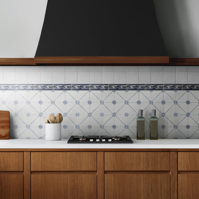 clé’s 17th century: maiolica de delft is our love letter to the classic blue and white tile that swept the globe centuries ago–and hasn’t fallen out of style since then. our collection of hand painted glazed terracotta tile from Italy brings the richness of this tradition to life in three series that let you dial in the design from delicate to maximalist.