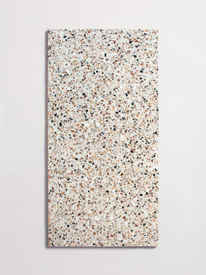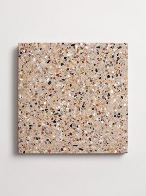 made in the classic italian style — but with a decidedly american accent, our forage terrazzo is a solid, studded statement. with six base colors that correspond to our cement collection, the warm, woodsy tones and textures of its earthy aggregate — consisting of river worn pebbles — are a mesmerizing melange of organic tones. a timeless look that is equally rugged and elegant.