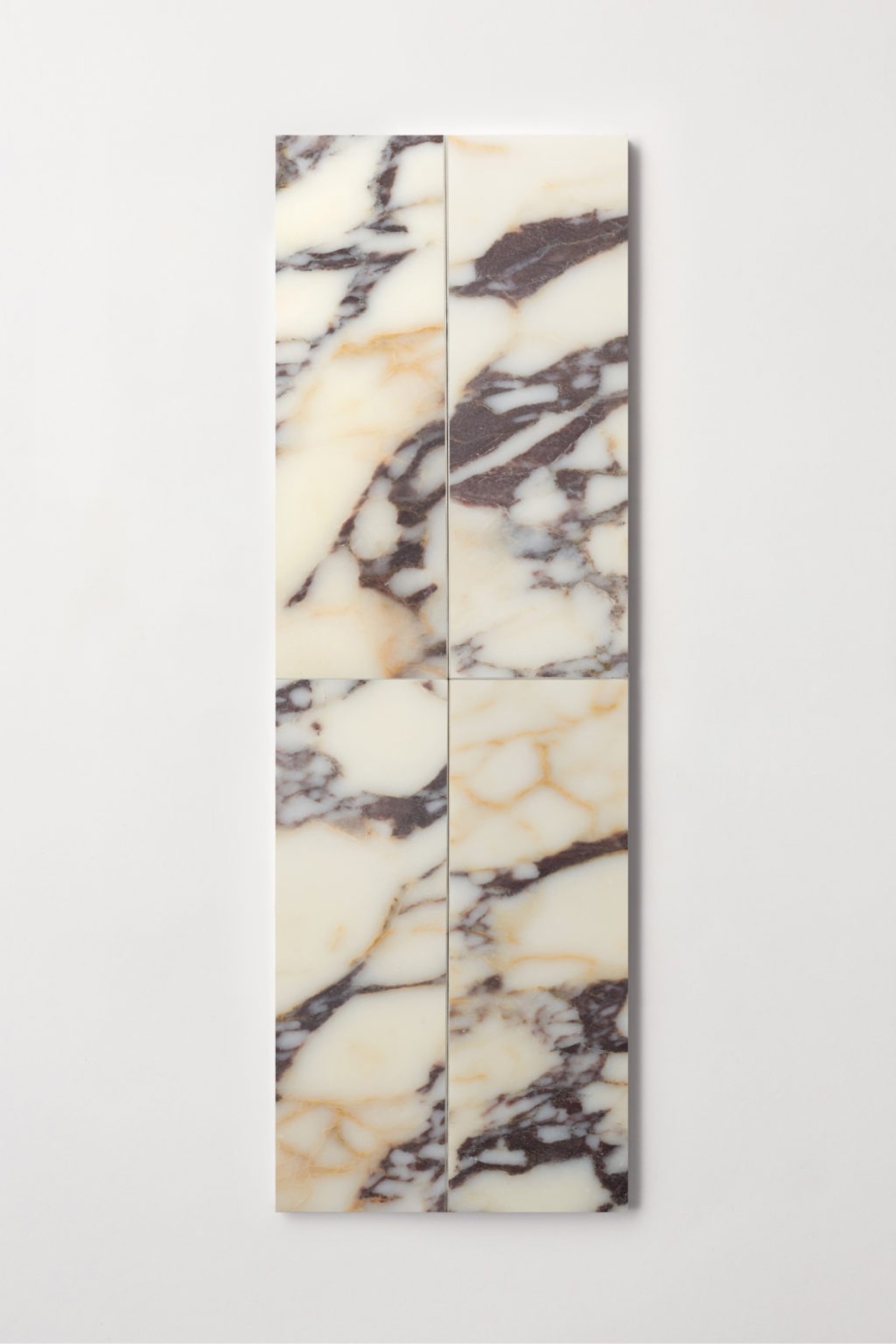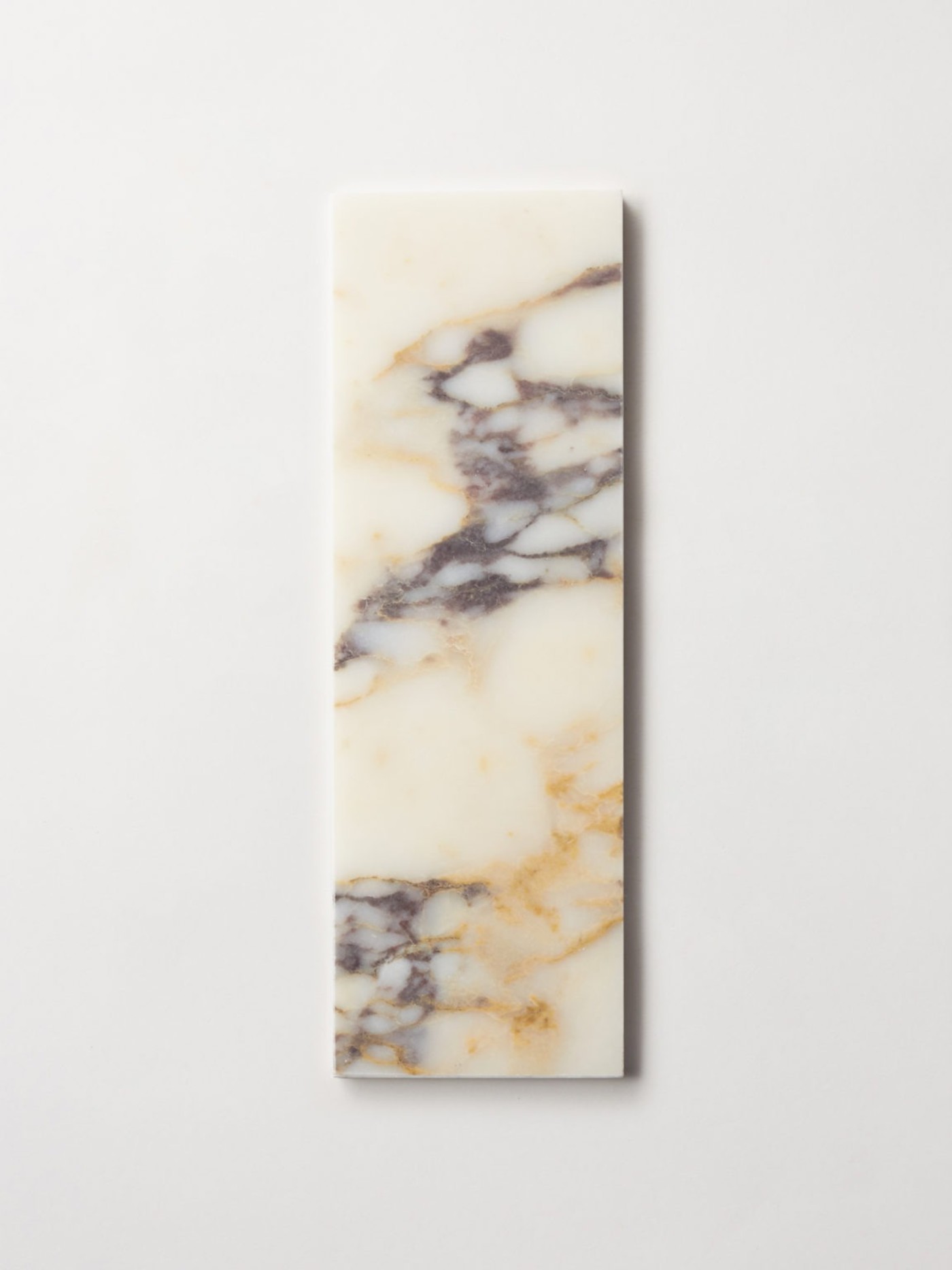 in tile form, blending this marble is of the utmost importance. with clé calacatta viola tiles, veining may not appear on every tile so please make sure the tile is laid out before installation to ensure the overall drama and flow of the veining reads well.