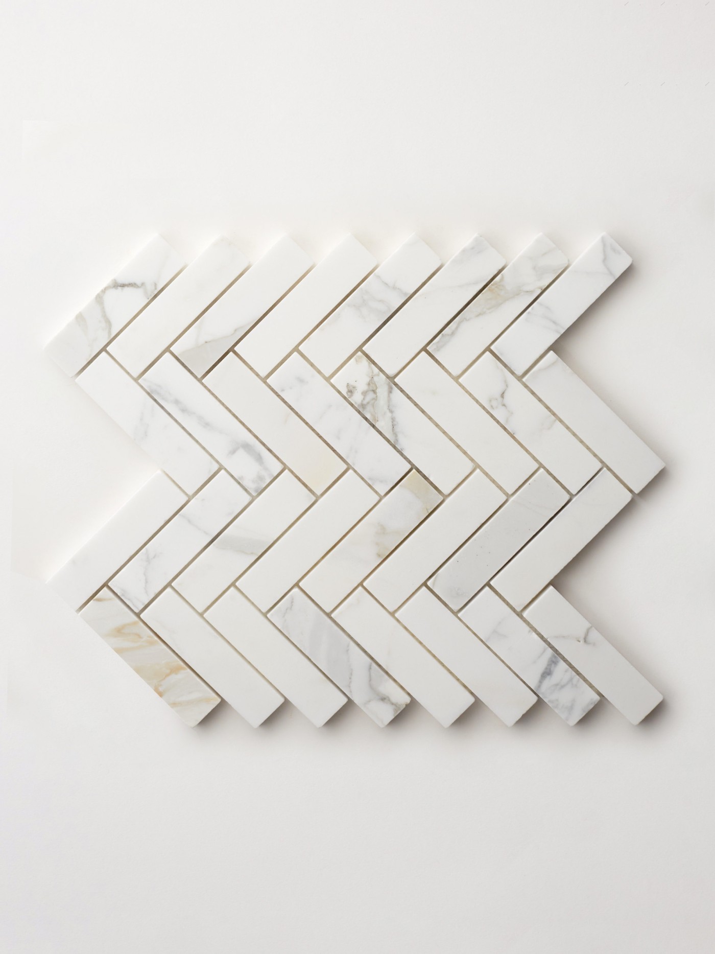 clé calacatta gold | herringbone mosaic sheet 1" x  3¾" x  ⅜"