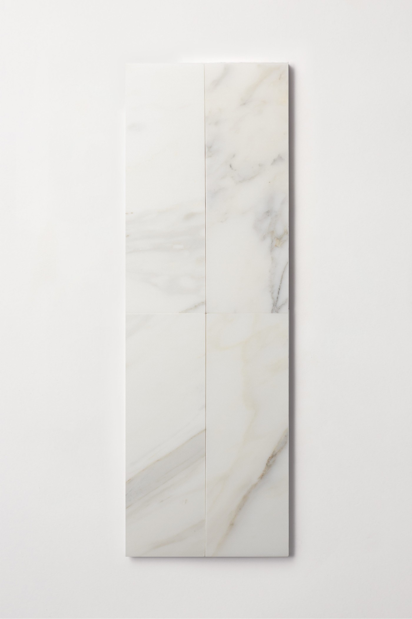 in tile form, blending this marble is of the utmost importance. with clé calacatta gold tiles, veining may not appear on every tile so please make sure the tile is laid out before installation to ensure the overall drama and flow of the veining reads well.
