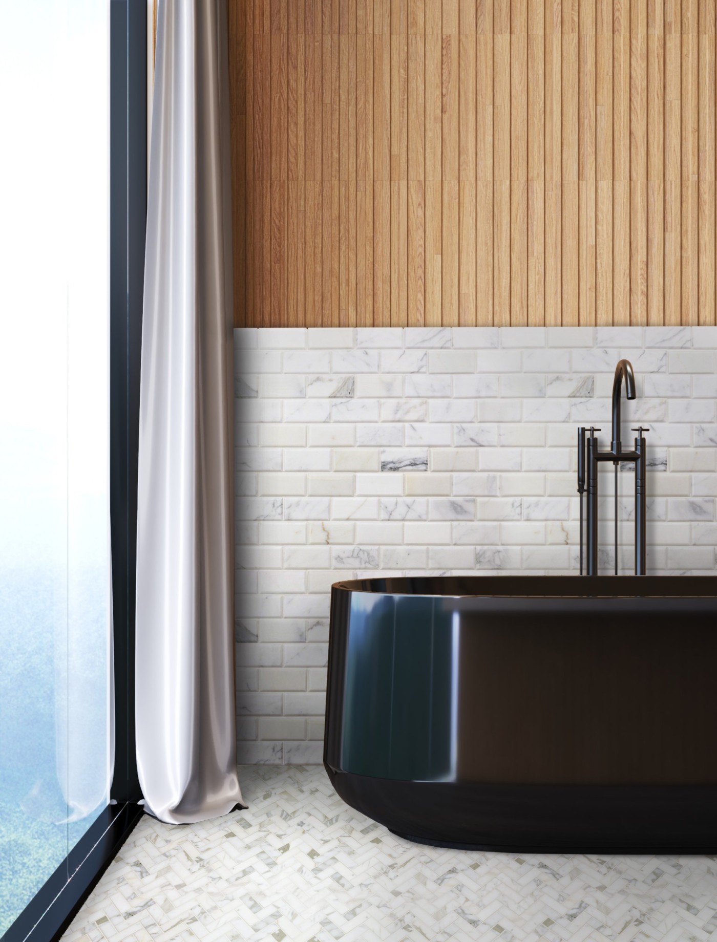 marbles of this stature typically come in slab form. bucking the slab and the larger format, we have created a collection of tiles in traditional shapes and sizes that make the stone more accessible and unlock greater installation potential. consider this the next go-to tile.