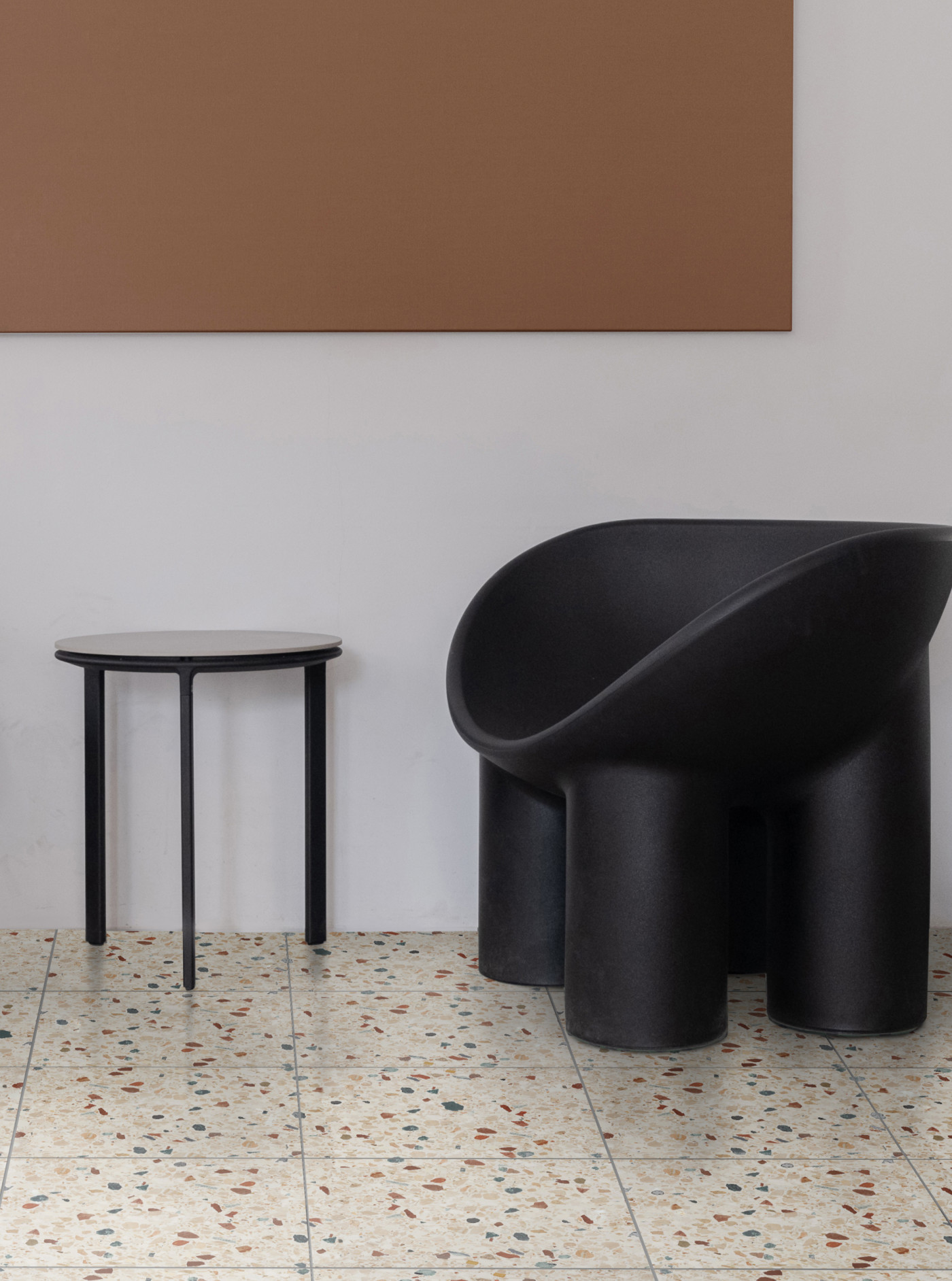 our dolce vita terrazzo tiles exhibit a honed, smooth surface.