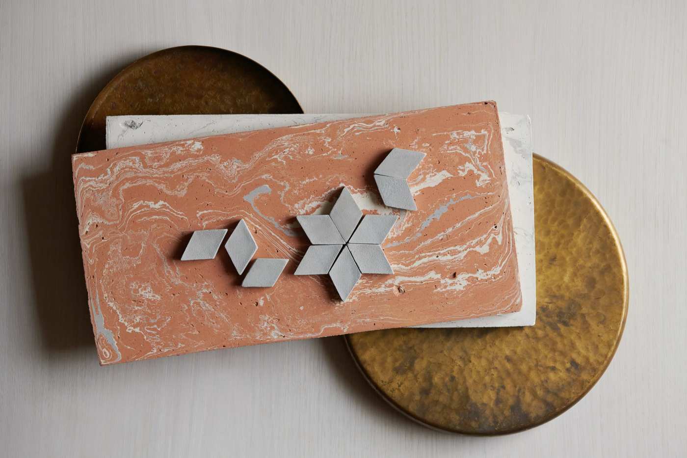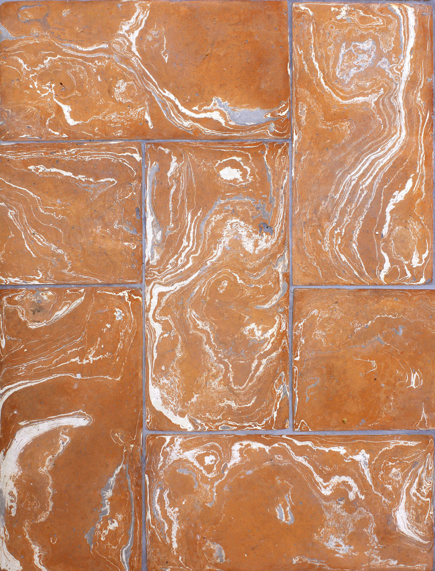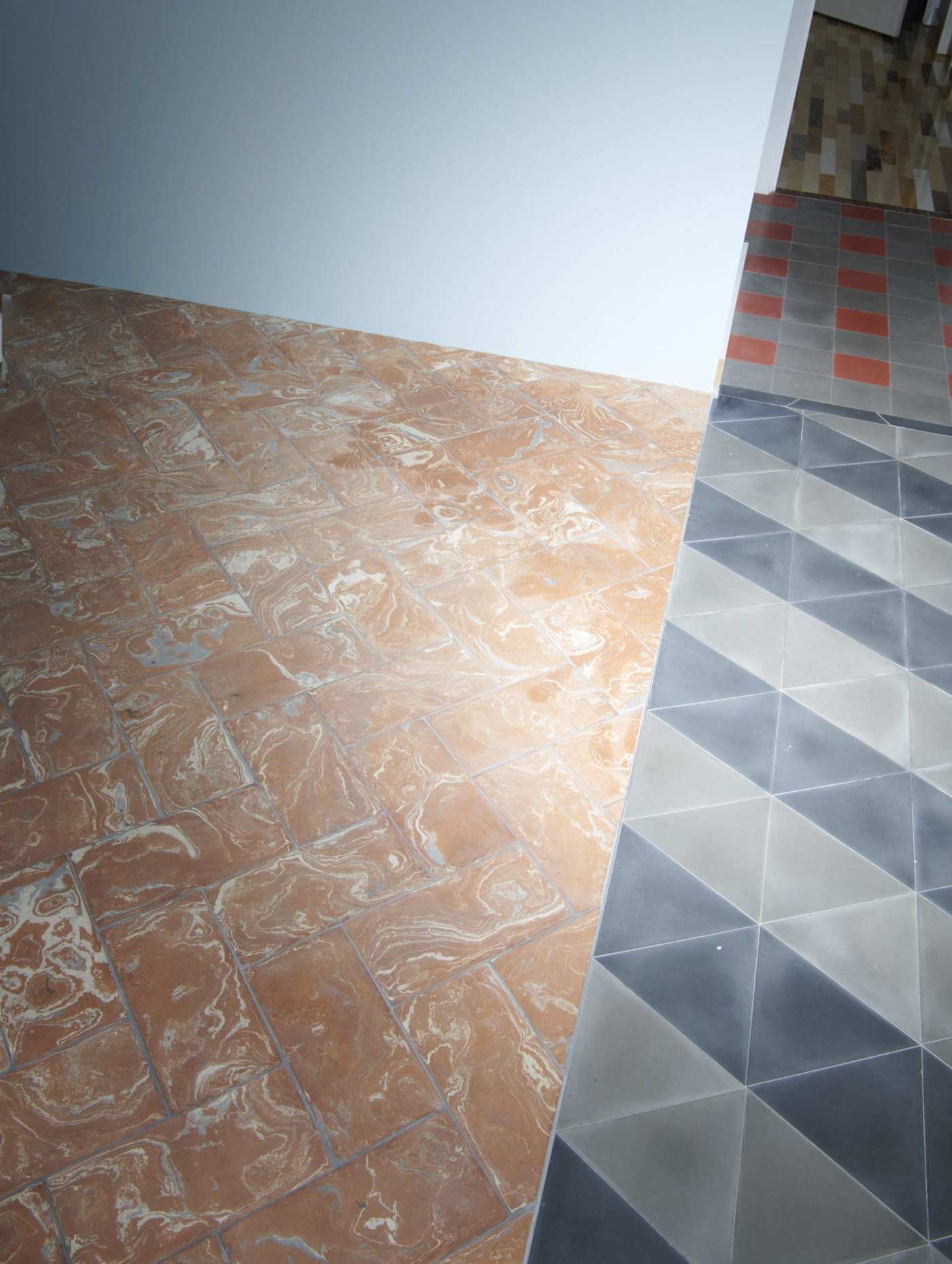 variegated cotto was one of the most popular materials in italy during the sixteenth and seventeenth centuries and was used for flooring in many churches and historic mansions. this unusual marbled surface is obtained by expert hand-crafting techniques where clays with different compositions are mixed to create a pattern of layers that are unique to each mix. once fired, the marbling of clays intensifies revealing their chromatic diversity. cotto variegato Ø1 is a marbled mix of fornace brioni's cotto rosato, cotto bianco, and grey cotto clay bodies.
