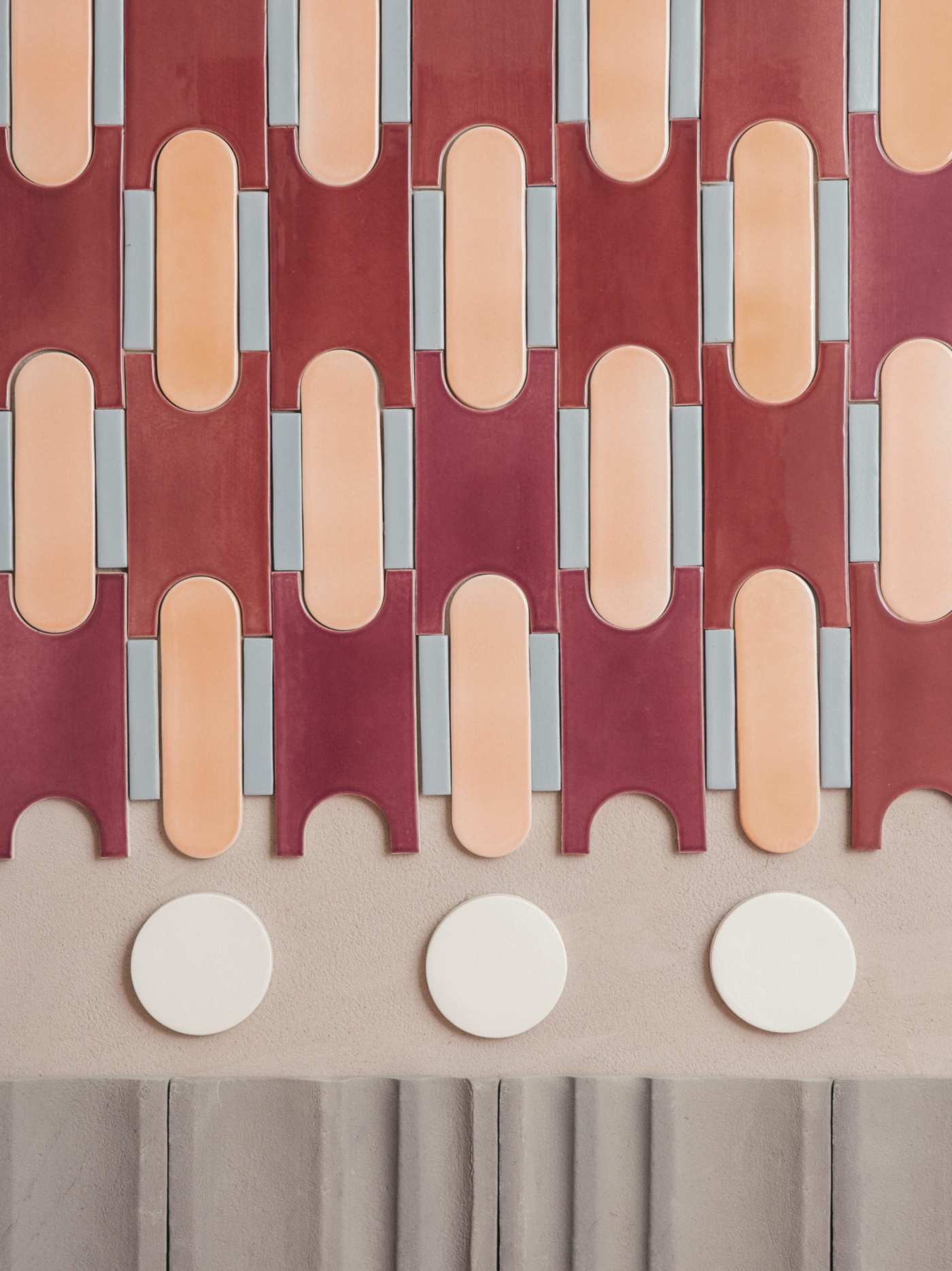 our fornace brioni glazed ceramic tiles have a smooth glazed finish. the forest pill and the shell shaped rocaille have a glossy surface, whereas the beige listellos and the rose rectangle have a matte surface.