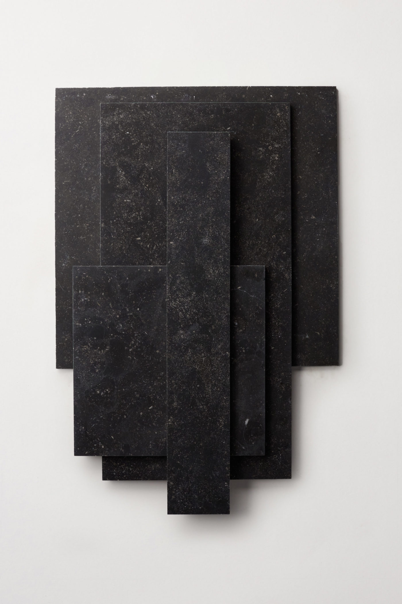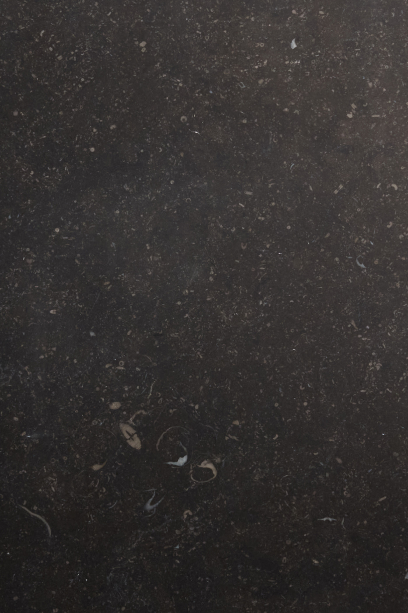 with a smooth, soft, fine-grained look, each stone is utterly unique, bringing with it a quiet tonal moodiness, a bit of shadow and light. cartwright is a dark, almost black limestone, slightly flecked with white minerals and bearing the slightest hint of iridescence.