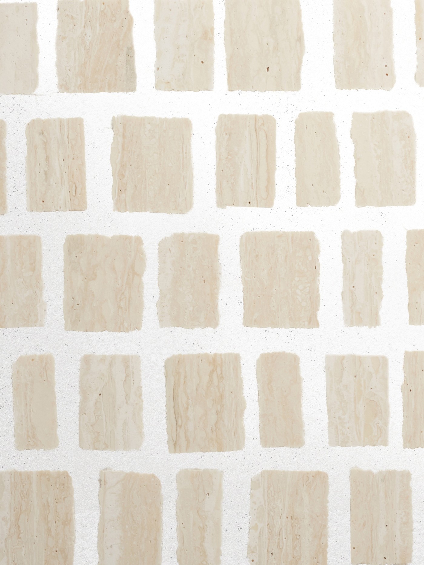 an homage to one of our favorite italian architects and designers, carlo scarpa, these chunks of honed stone and marble with irregular edges are both sophisticated and raw in design. these are offered mounted, accommodating two different grout joint sizes: narrow and wide. beige travertine is a porous, beige stone that features light, ivory cream veining and naturally occurring pits, holes, and crevices. while we think of these pits, holes, and crevices as a celebration of nature, they can be filled with grout for a less textural look.