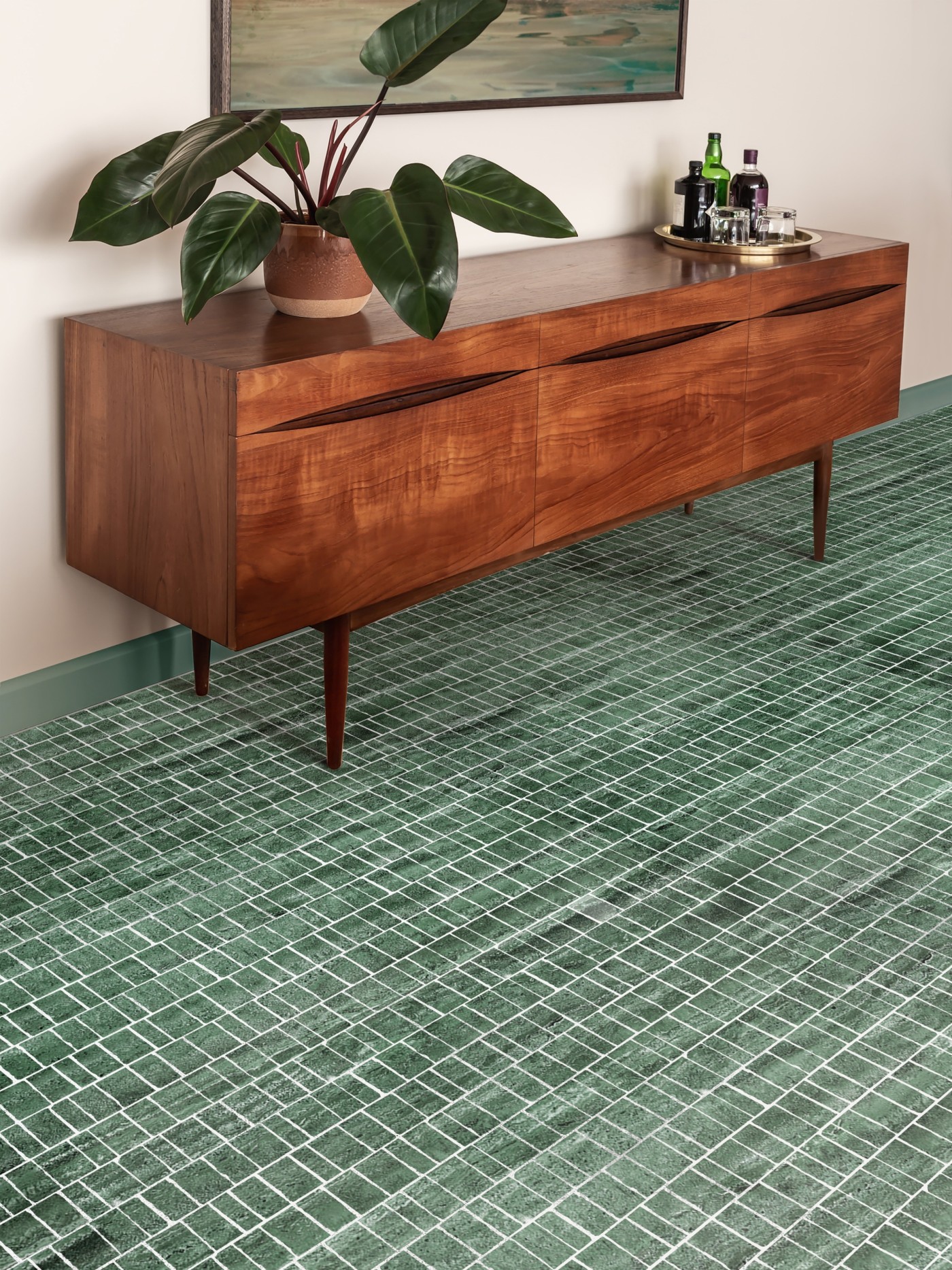 an homage to one of our favorite italian architects and designers, carlo scarpa, these chunks of honed stone and marble with irregular edges are both sophisticated and raw in design. these are offered mounted, accommodating two different grout joint sizes: narrow and wide. verde is a medium green marble featuring veining that ranges from dark green to (almost) white veining.