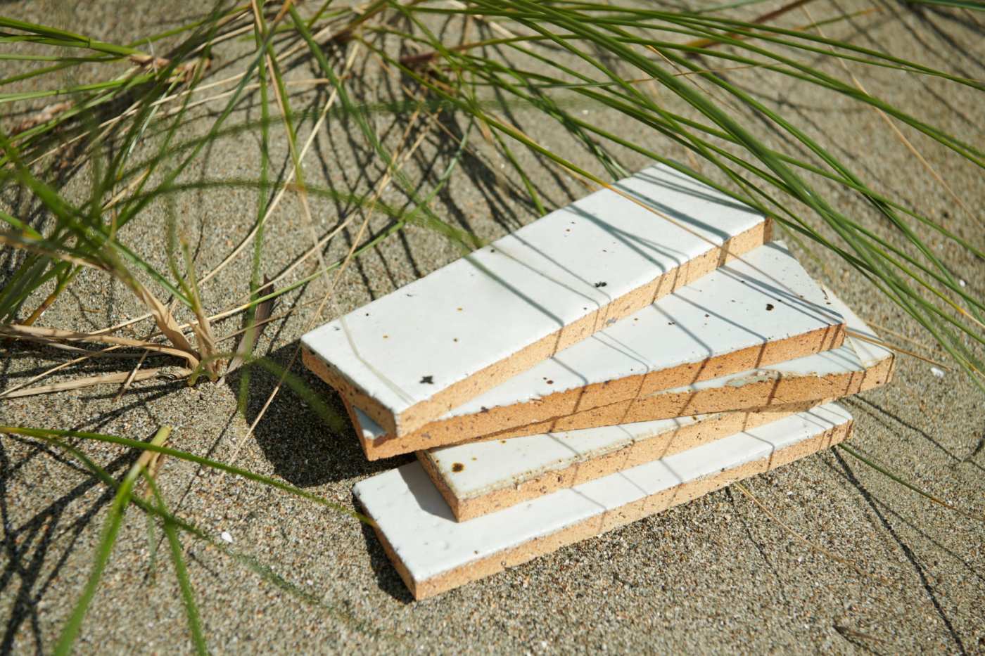 for this line, clé creates custom glazes and uses an unrefined clay sourced from the base of the sierra nevada foothills that allows for the unpredictable nature of raw material interactions when fired in the kiln. the result is a thin glazed brick that embraces all kinds of beautiful re-combinations of the elements creating texture, opacity, surface sheen, pigment variation, inclusions, and crystallization.