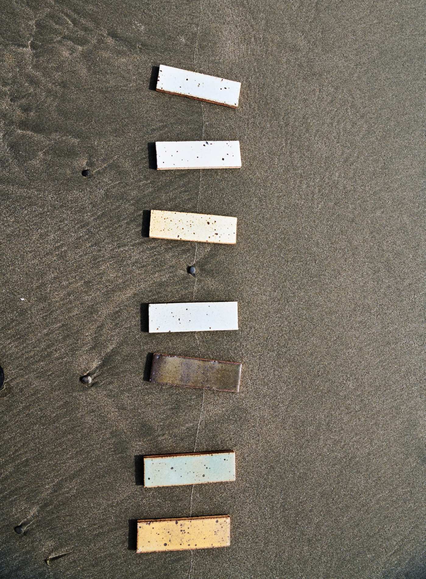 for this line, clé creates custom glazes and uses an unrefined clay sourced from the base of the sierra nevada foothills that allows for the unpredictable nature of raw material interactions when fired in the kiln. the result is a thin glazed brick that embraces all kinds of beautiful re-combinations of the elements creating texture, opacity, surface sheen, pigment variation, inclusions, and crystallization.