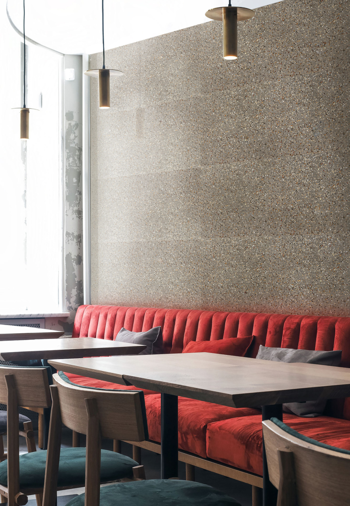 our first collection of terrazzo takes its inspiration from the great wilderness of north america (where the aggregate in our terrazzo hails from) and celebrates woodsy earth tones. using traditional italian processes with modern italian machinery, the smooth river-polished stone aggregate is mixed with our singular cement shades to produce a terrazzo that's earthy and warm, rustic yet handsome. for a perfect pairing, match them with their cement color counterparts.