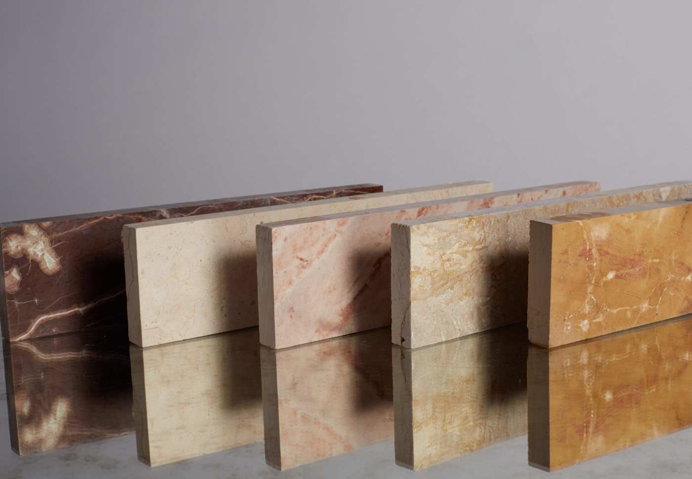 each strata linea bundle features a mix of ten types of stone: travertine, ajloun, jerusalem, sahrawi, ma'an, karak, beirzeit, daba'a, carrara and crema.