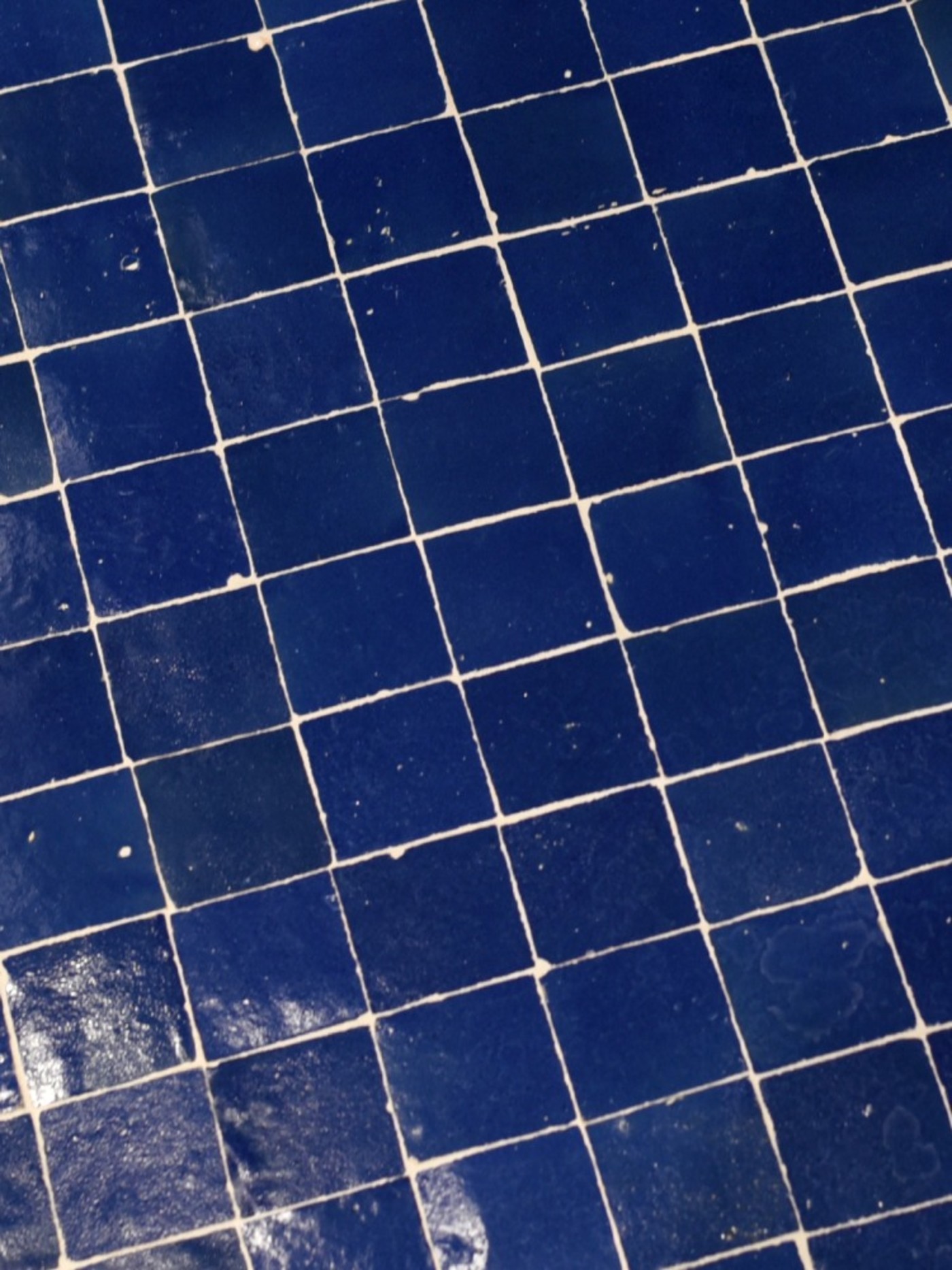 zellige is traditionally set without the use of any grout. in morocco the installations are done with a butt joint and no grout whatsoever–and they have withstood the test of time.