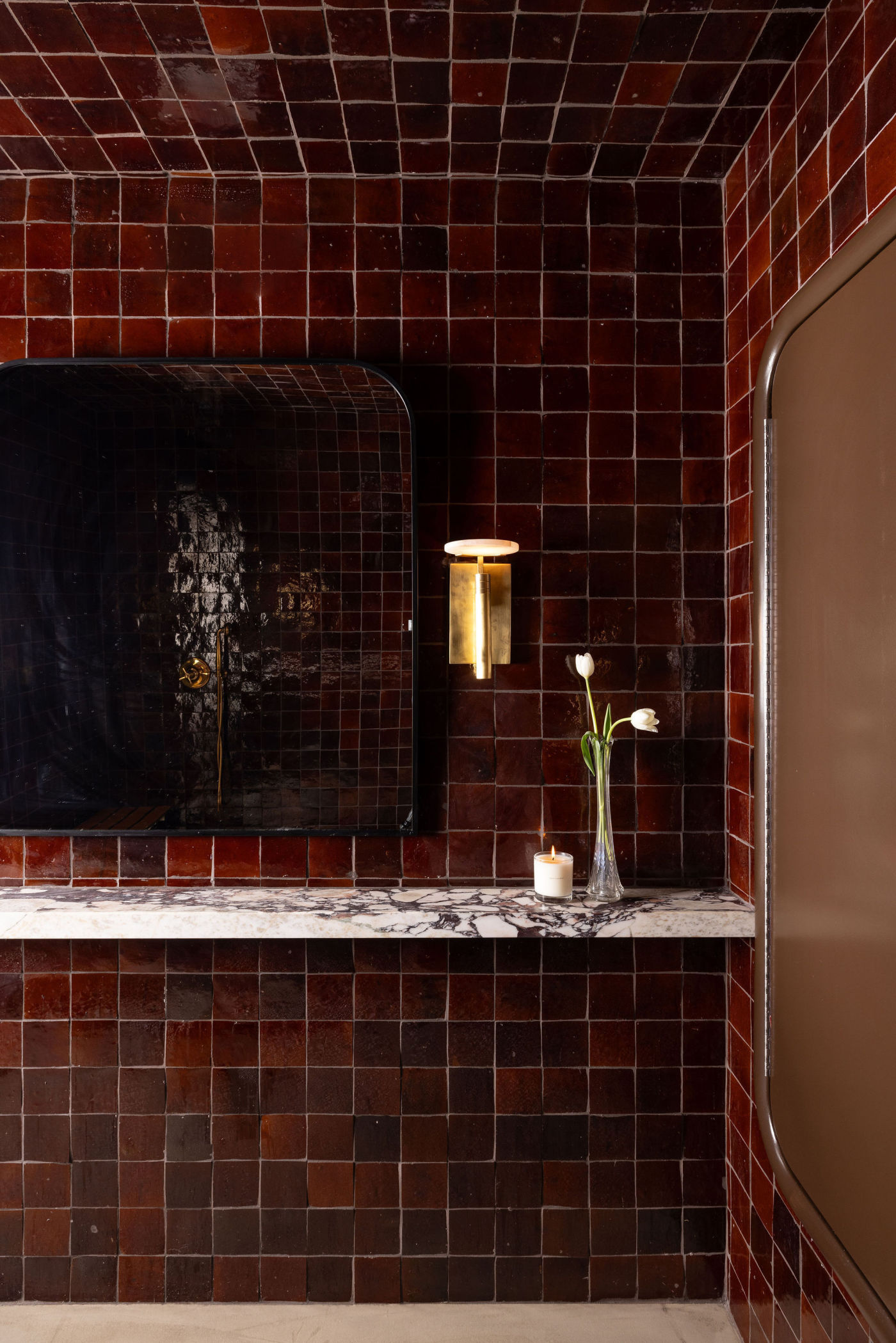argan brown is a natural zellige covered with a rich dark chocolate glaze. deep, and sumptuous, the glaze highlights the authentic zellige clay’s inherent texture. use it to add a bit of depth and character to any design, or to create a quietly glamorous foundation for any space.