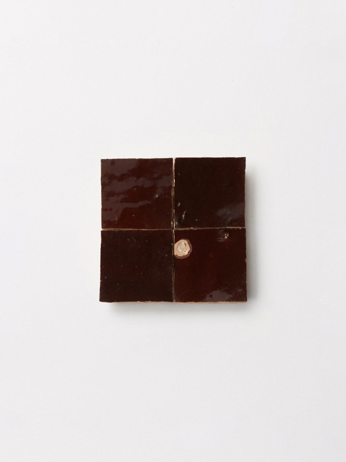 argan brown is a natural zellige covered with a rich dark chocolate glaze. deep, and sumptuous, the glaze highlights the authentic zellige clay’s inherent texture. use it to add a bit of depth and character to any design, or to create a quietly glamorous foundation for any space.