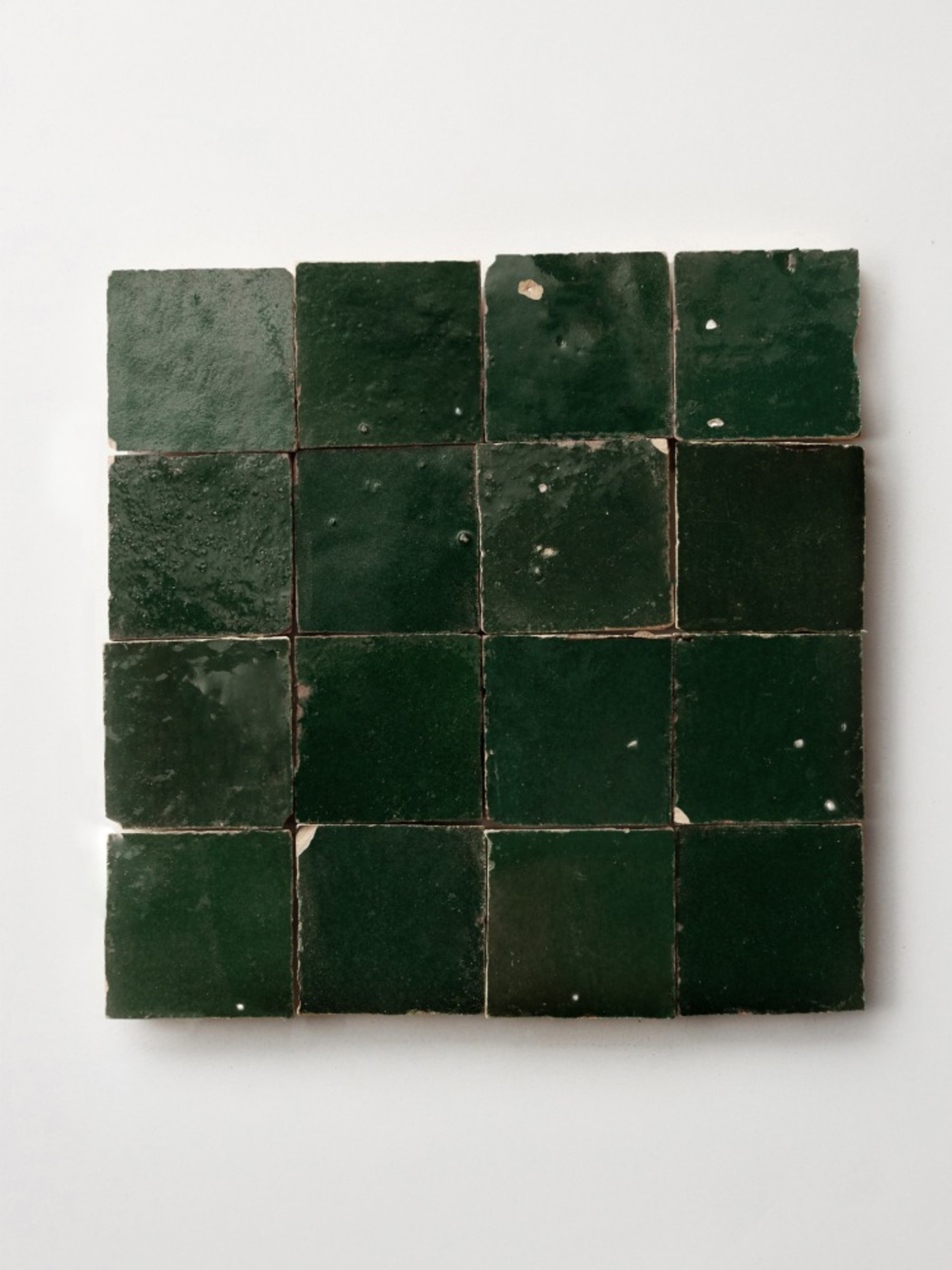 zellige tiles are created from natural glazes, pigments and clay, are fired in handmade kilns using olive pits, and chiseled by hand into desired shapes and sizes. because of the natural materials and the artisan production methods, there will be noticeable variations in thickness, size, shade and color. there may even be differences in the same color across different sizes of zellige. if you want a uniform looking glazed tile, zellige may not be right for your project!