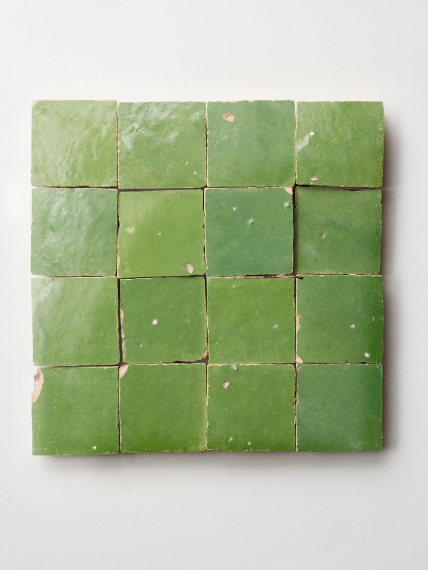zellige tiles are created from natural glazes, pigments and clay, are fired in handmade kilns using olive pits, and chiseled by hand into desired shapes and sizes. because of the natural materials and the artisan production methods, there will be noticeable variations in thickness, size, shade and color. there may even be differences in the same color across different sizes of zellige. if you want a uniform looking glazed tile, zellige may not be right for your project!