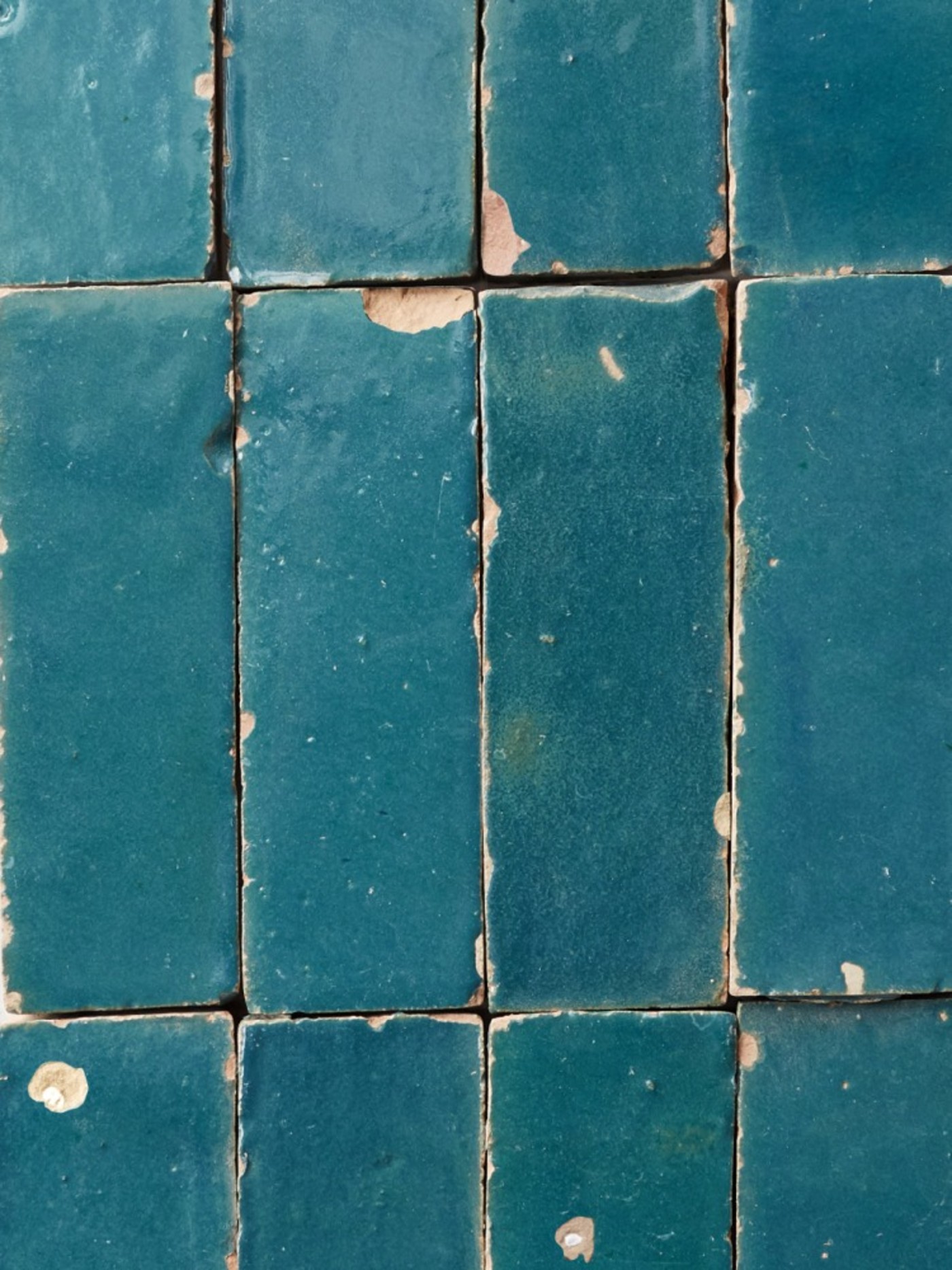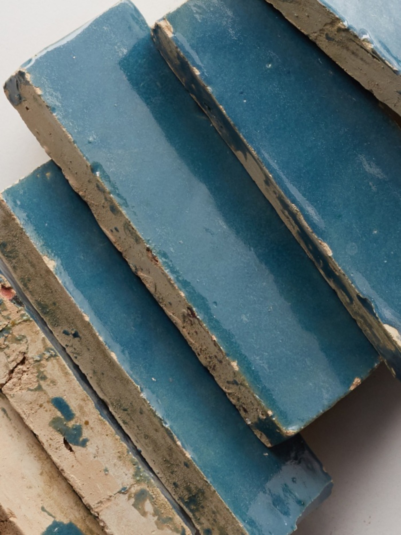 zellige tiles are created from natural glazes, pigments and clay, are fired in handmade kilns using olive pits, and chiseled by hand into desired shapes and sizes. because of the natural materials and the artisan production methods, there will be noticeable variations in thickness, size, shade and color. there may even be differences in the same color across different sizes of zellige. if you want a uniform looking glazed tile, zellige may not be right for your project!