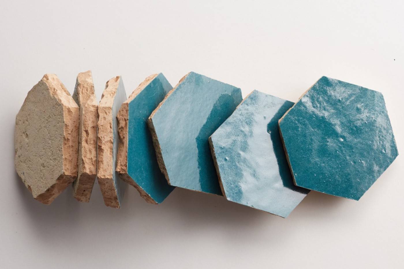 zellige tiles are created from natural glazes, pigments and clay, are fired in handmade kilns using olive pits, and chiseled by hand into desired shapes and sizes. because of the natural materials and the artisan production methods, there will be noticeable variations in thickness, size, shade and color. there may even be differences in the same color across different sizes of zellige. if you want a uniform looking glazed tile, zellige may not be right for your project!