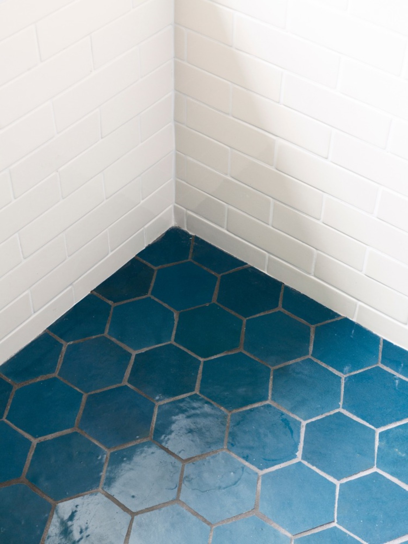 in order to increase dcof in wet area applications of 4”x4” zellige (especially Shower Floors), we recommend broadening the grout joint size on the setting of the pan tiles, vertical staggering of the tile layout or cutting the tiles into 2”x2” squares. for hexes we recommend at least a 1/8” grout joint for Shower Floors.