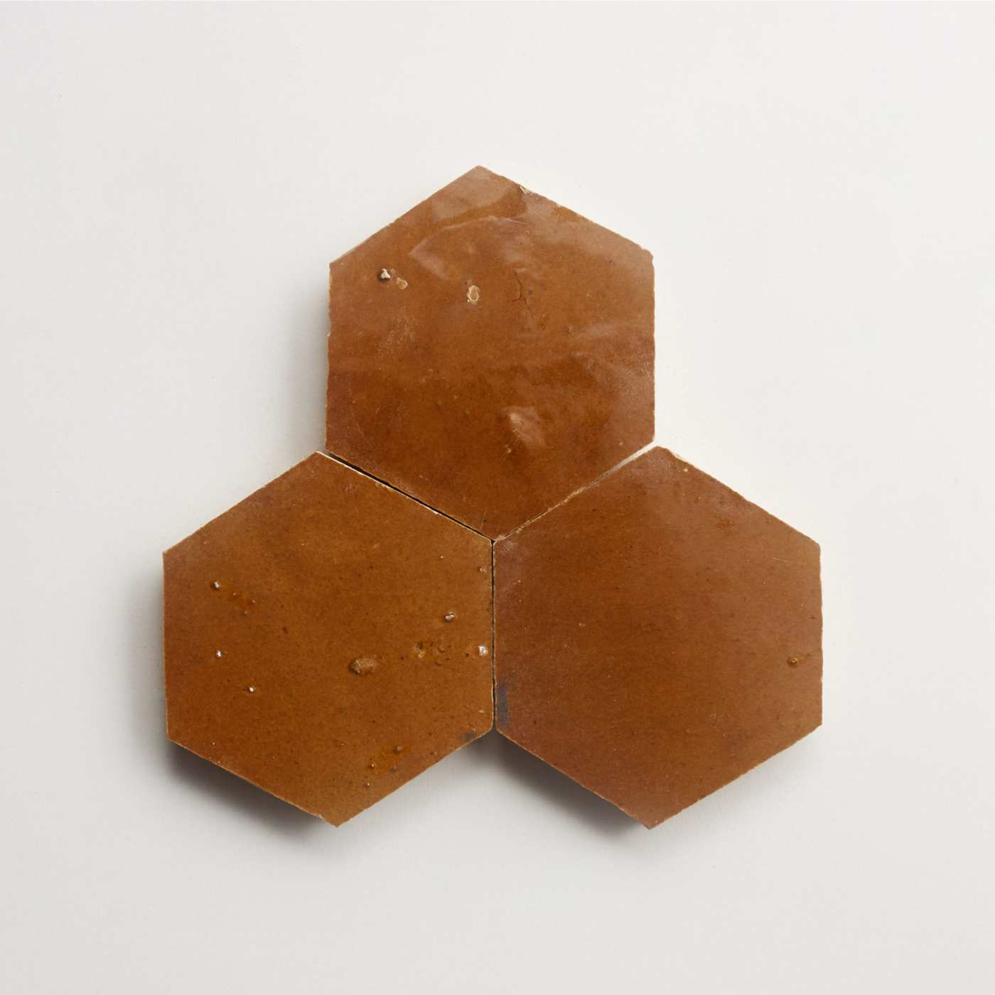 zellige | golden henna | hex 3½" x  4" x  ⅜"