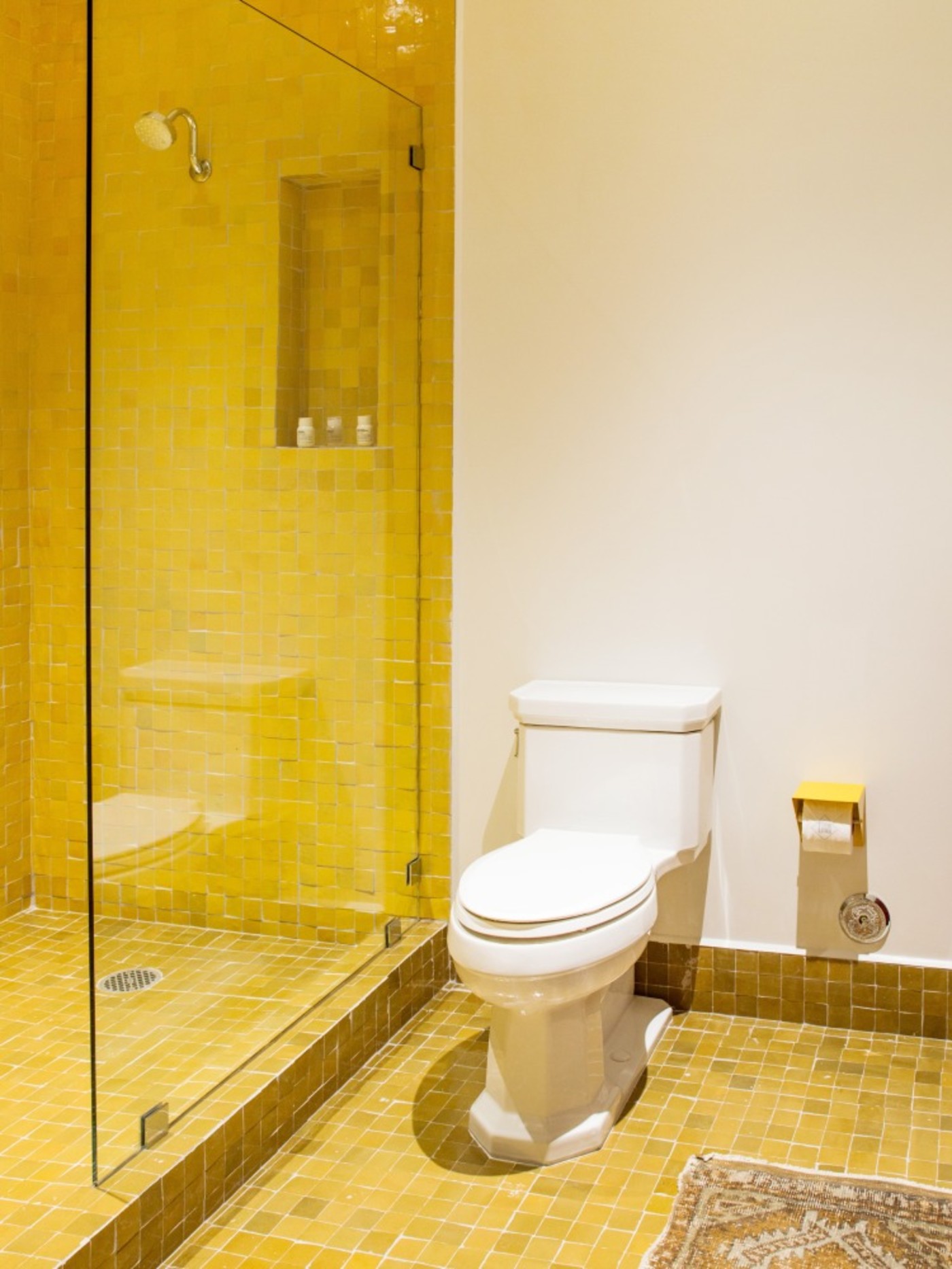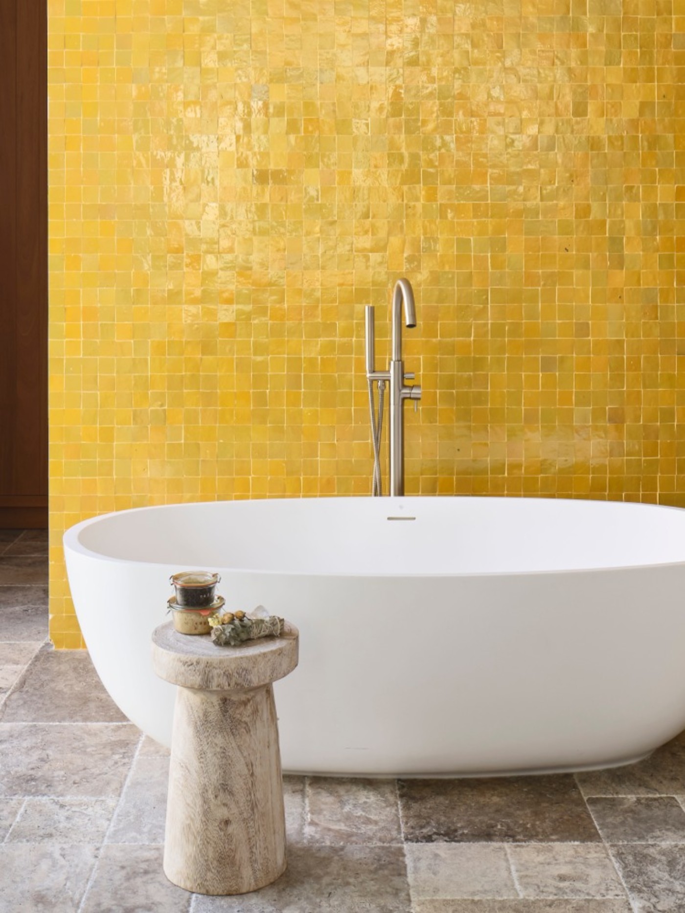 over time, a natural patina will occur on floors as they are maintained and naturally wear. this inherent traffic pattern is a highlight of using zellige and should be both anticipated and favored.