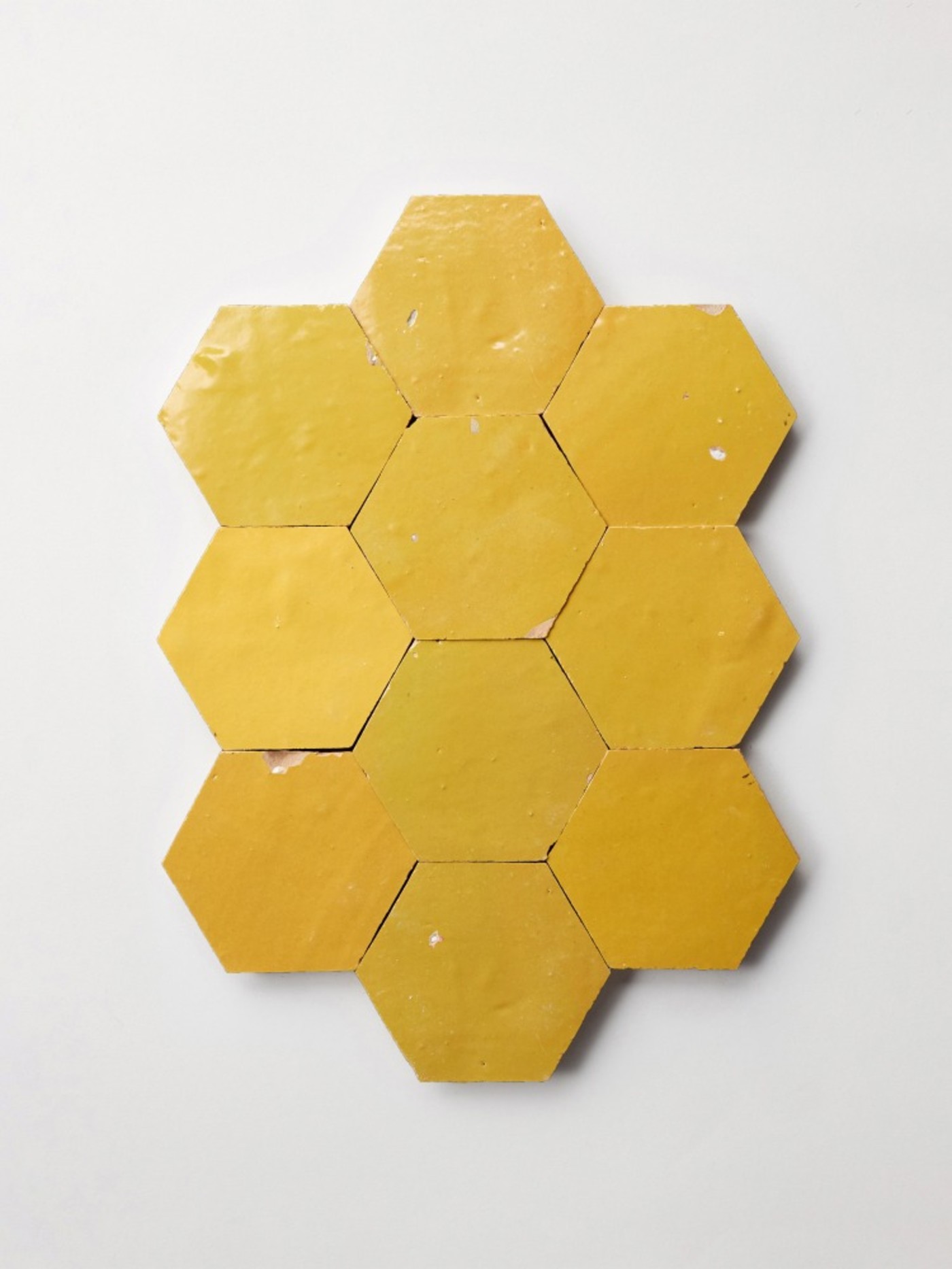 zellige | indian saffron | hex 3½" x  4" x  ⅜"