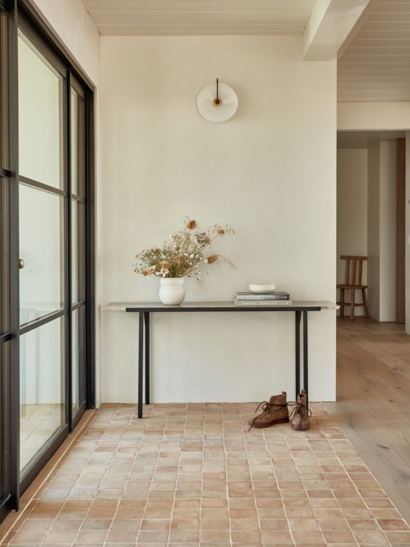 over time, a natural patina will occur on floors as they are maintained and naturally wear. this inherent traffic pattern is a highlight of using zellige and should be both anticipated and favored.
