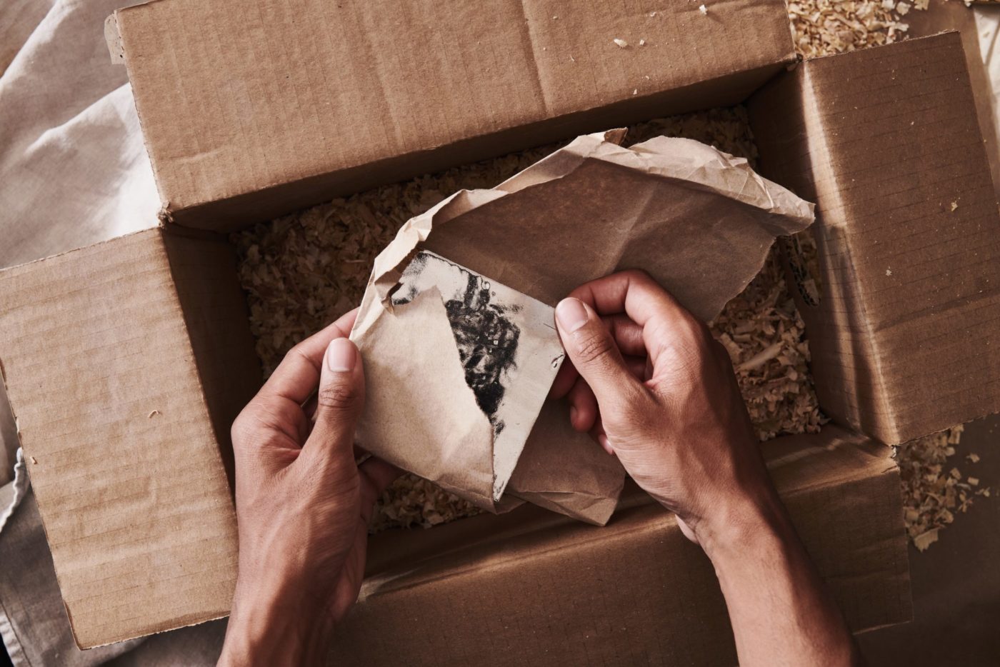 zellige tiles travel a long distance and are packed in the traditional way with sawdust to protect the tiles from breaking.