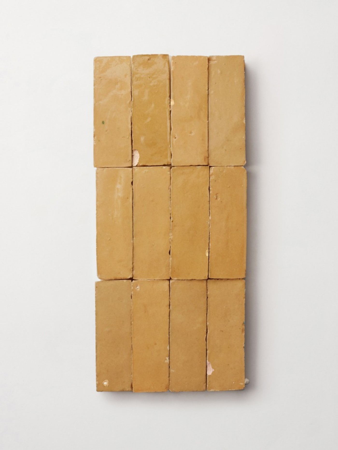zellige tiles are created from natural glazes, pigments and clay, are fired in handmade kilns using olive pits, and chiseled by hand into desired shapes and sizes. because of the natural materials and the artisan production methods, there will be noticeable variations in thickness, size, shade and color. there may even be differences in the same color across different sizes of zellige. if you want a uniform looking glazed tile, zellige may not be right for your project!