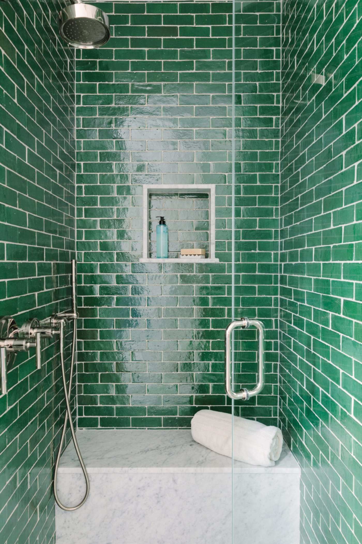inspired by the smallest segment of the sea, secret lagoon is one of the most classic zellige colors; it floats between light and dark greens. used on its own, it's brilliant and sparkles like an emerald. paired with white, it's crisp and stately; with natural unglazed terracotta, secret lagoon epitomizes the most traditional of zellige combinations. this buoyant green is classic enough to take on any surface, whether floors, walls, baths or kitchens.
