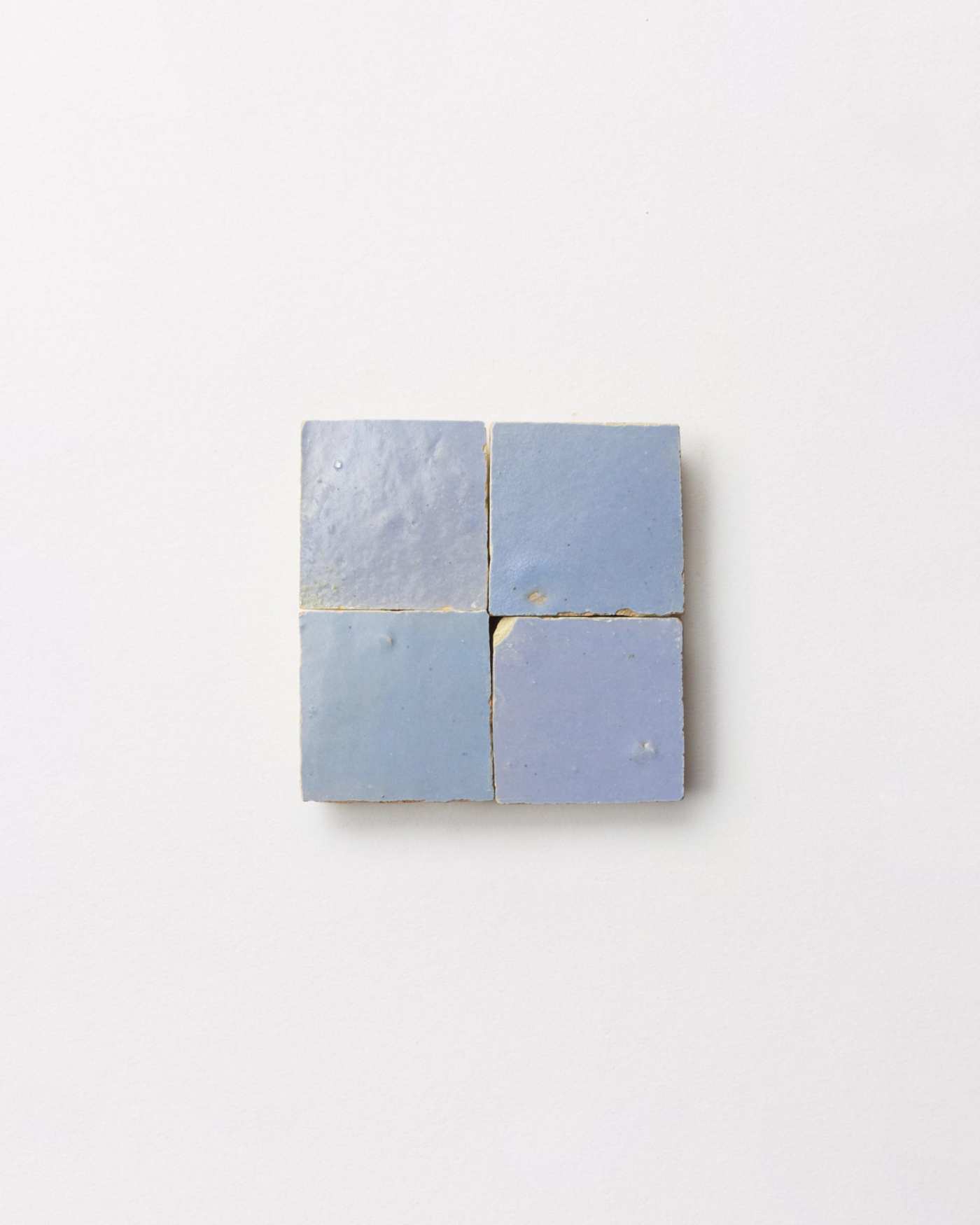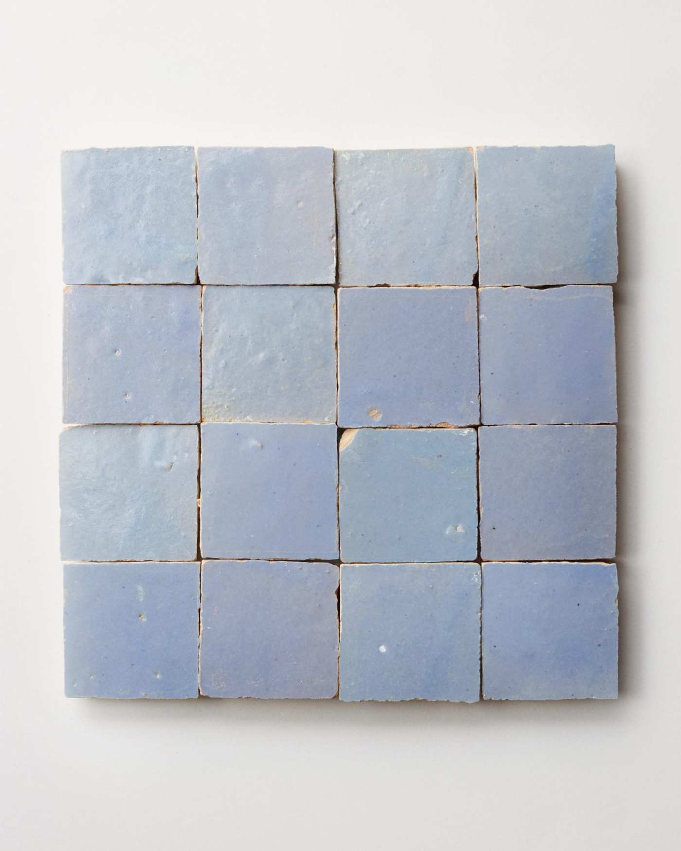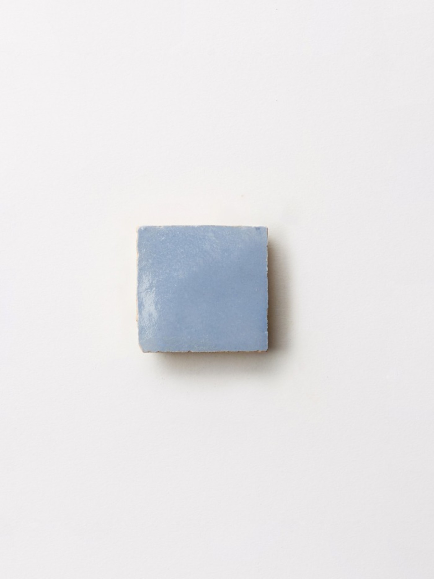 sky bloom zellige is the color of summer mornings, at just that moment of daybreak. it's the perfect tile for projects needing a blue that's fresh, soft and lightly tinged with the exposed peach of the terracotta, or is it the emerging sunrise?