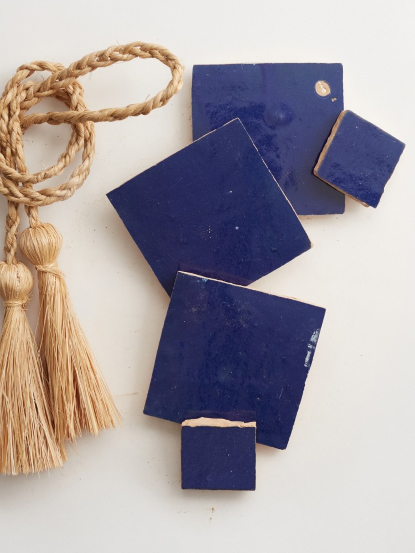 zellige tiles are created from natural glazes, pigments and clay, are fired in handmade kilns using olive pits, and chiseled by hand into desired shapes and sizes. because of the natural materials and the artisan production methods, there will be noticeable variations in thickness, size, shade and color. there may even be differences in the same color across different sizes of zellige. if you want a uniform looking glazed tile, zellige may not be right for your project!