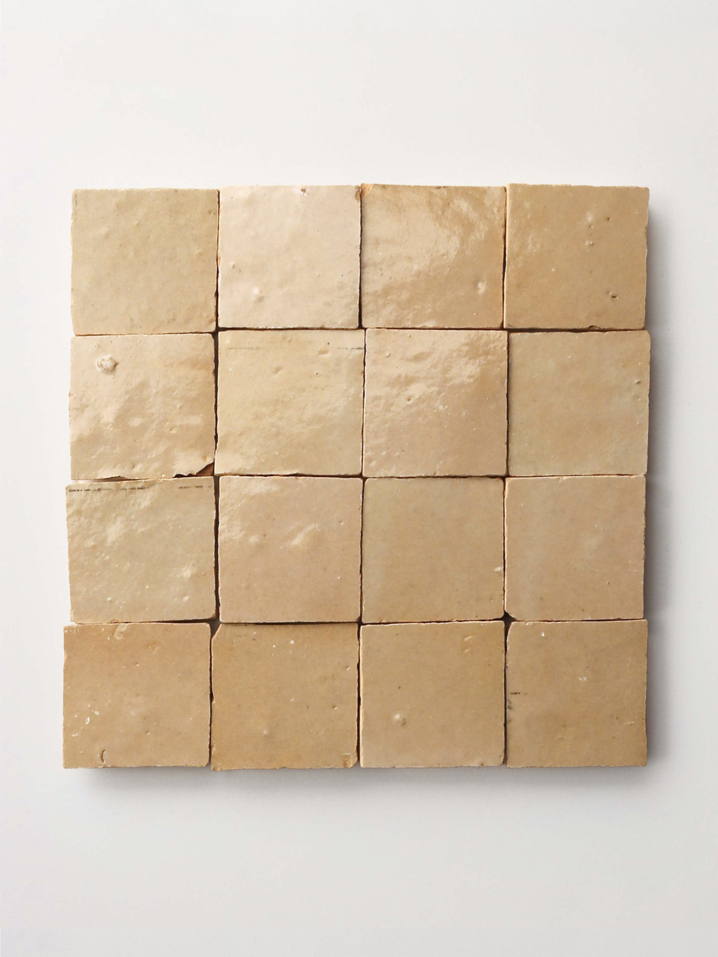 vesper sands is a natural zellige covered with a milky glaze and a bright sheen–a perfect neutral elevated by a glaze that brings out the characteristic zellige clay texture with its earthy authenticity. the light glaze highlights the extensive variation of the clay, offering every installation an array of tones and shades that together create a soulful complexity.