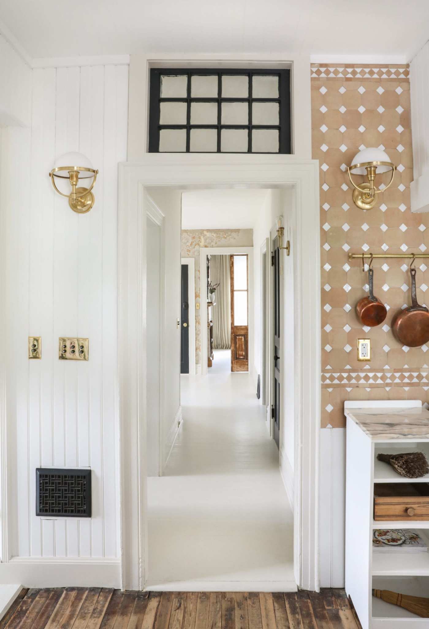 over time, a natural patina will occur on floors as they are maintained and naturally wear. this inherent traffic pattern is a highlight of using zellige and should be both anticipated and favored.