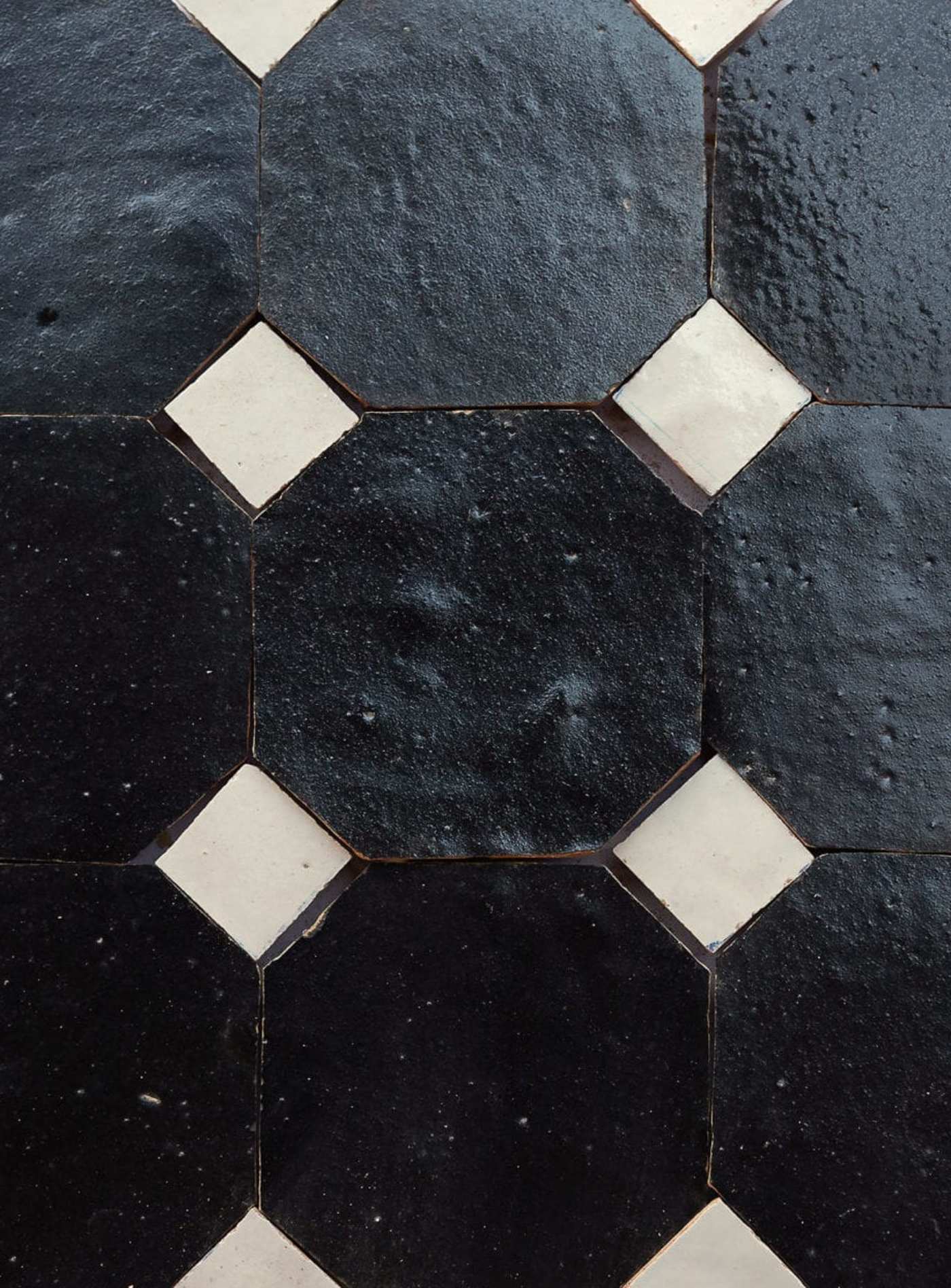 zellige is traditionally set without the use of any grout. in morocco the installations are done with a butt joint and no grout whatsoever–and they have withstood the test of time. however, at clé we recommend a slightly larger grout joint of 1/16"
