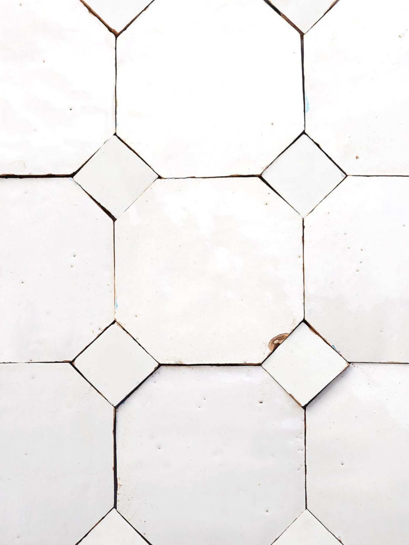 zellige is traditionally set without the use of any grout. in morocco the installations are done with a butt joint and no grout whatsoever–and they have withstood the test of time. however, at clé we recommend a slightly larger grout joint of 1/16"